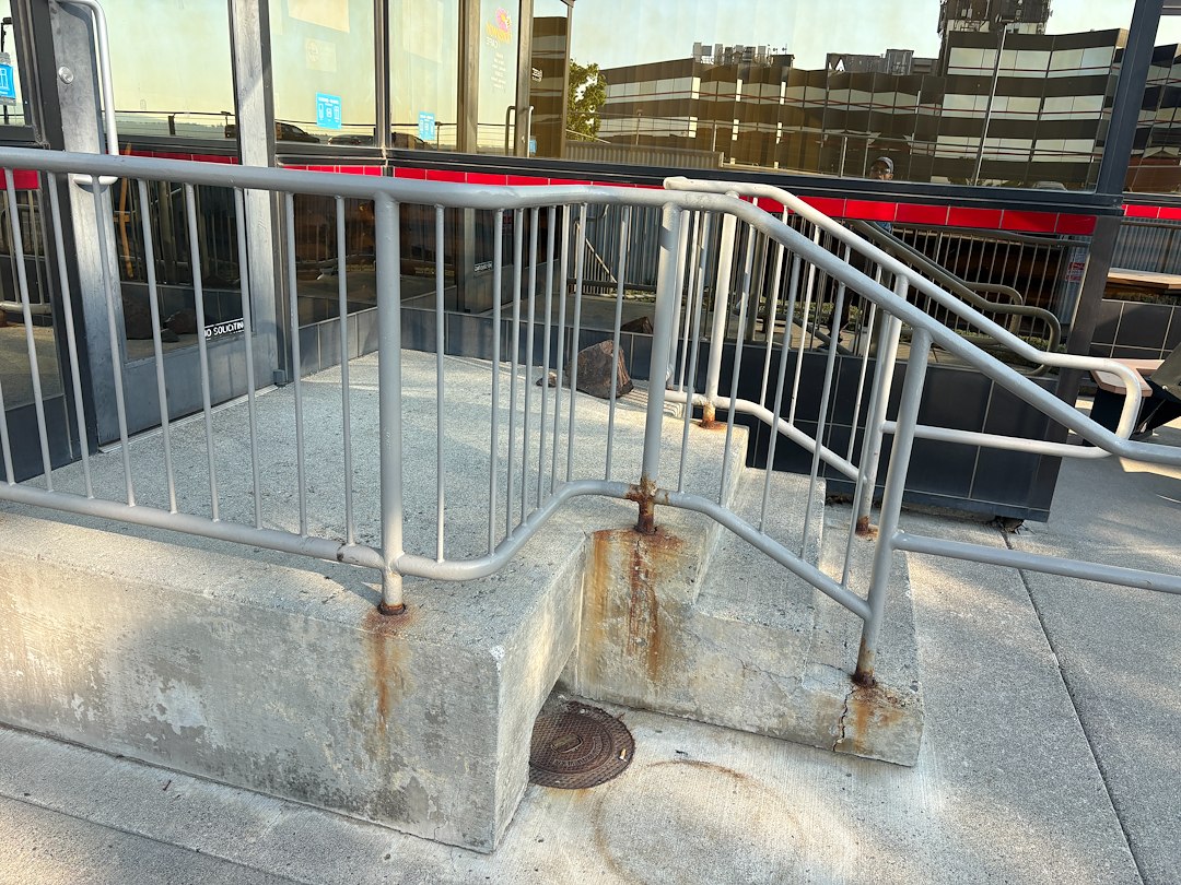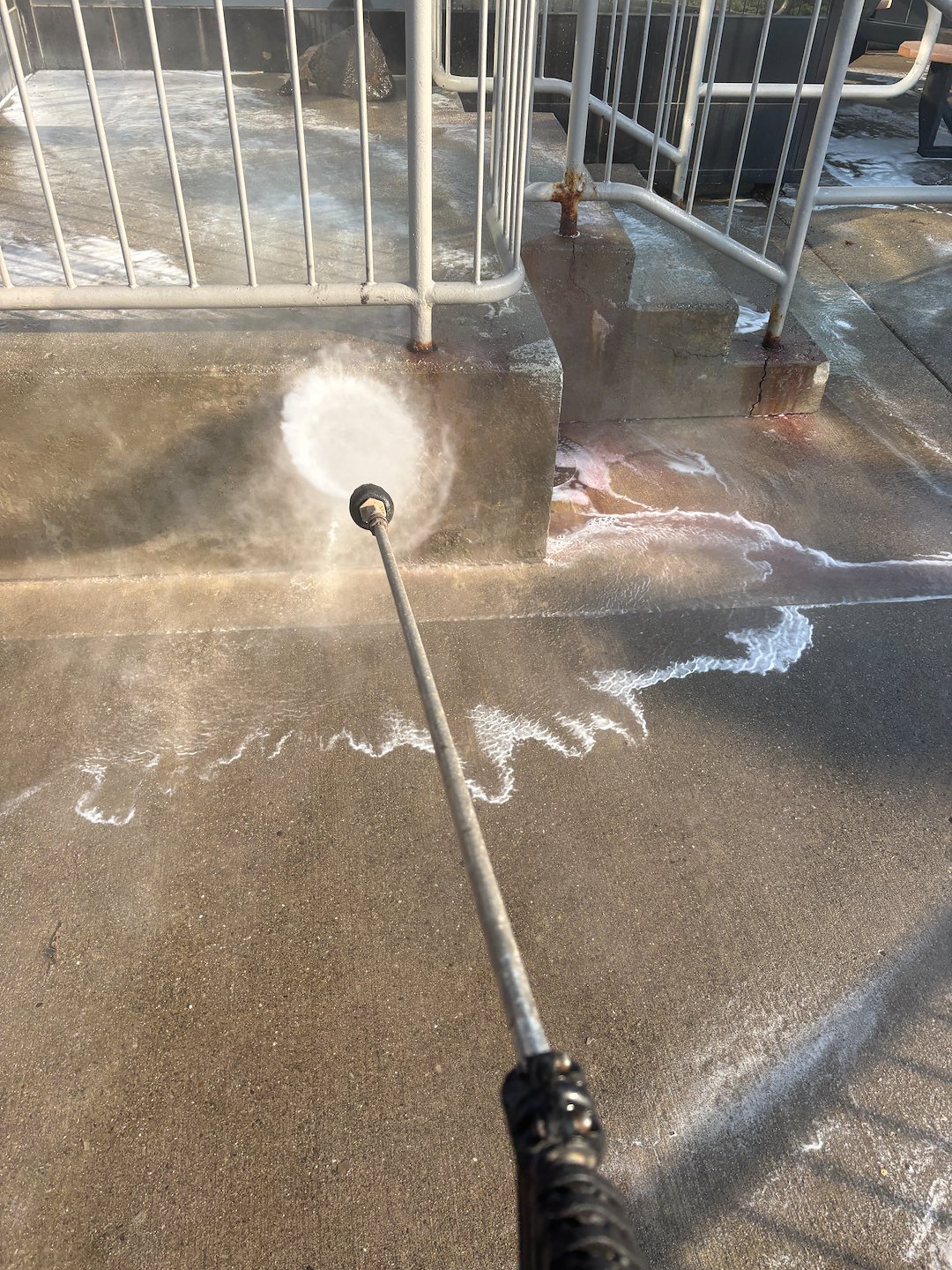 We recently tackled a project where years of rust from metal railings had stained the sides of the concrete walkways. Using our specialized rust removal detergent, we were able to get rid of the stains with just the right amount of pressure without damaging the surface.