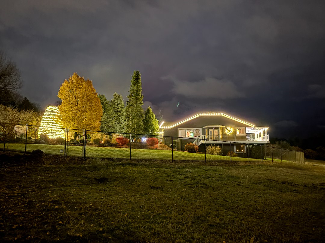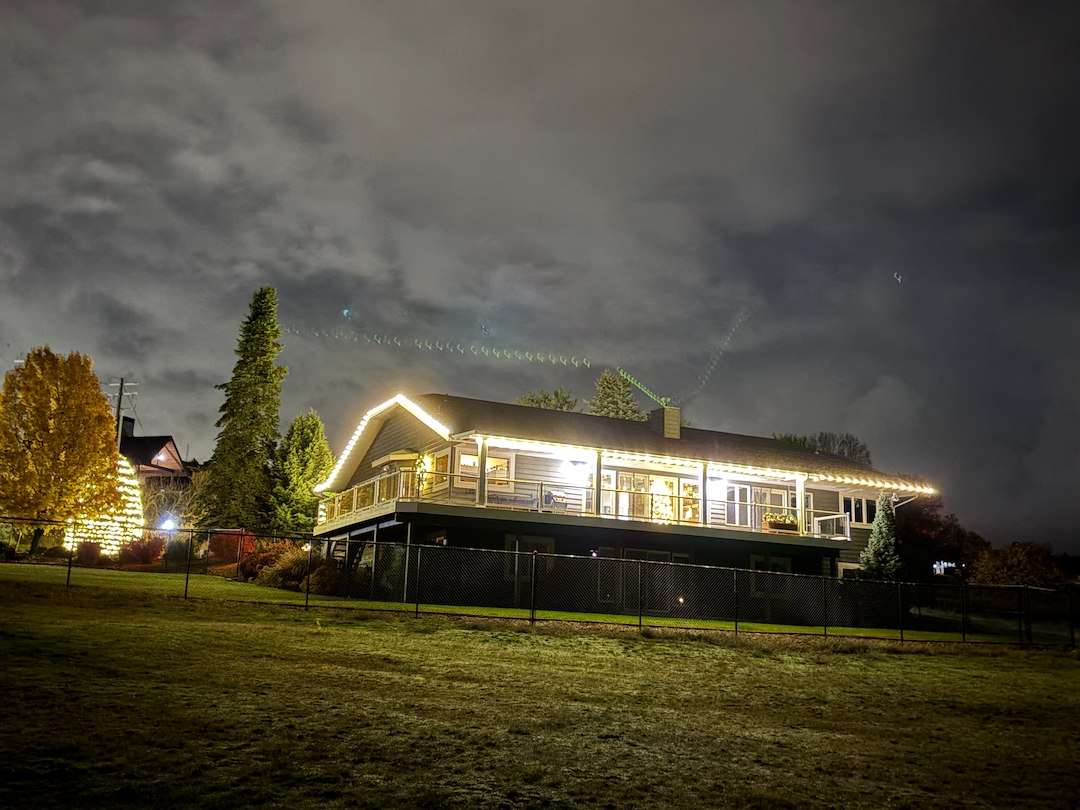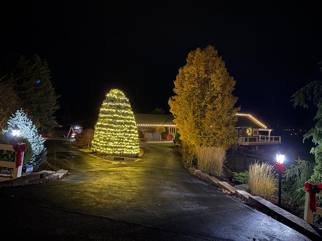 This towering treeโtaller than the house itselfโstands right at the driveway entrance, welcoming everyone with a classic warm white glow. ๐ Because of its prominent location on the hillside, this resplendent display can be seen shining bright from a long, long way! Your neighbors will absolutely love this view.